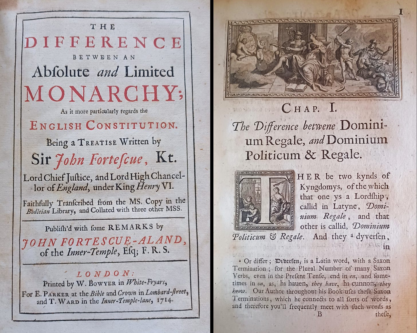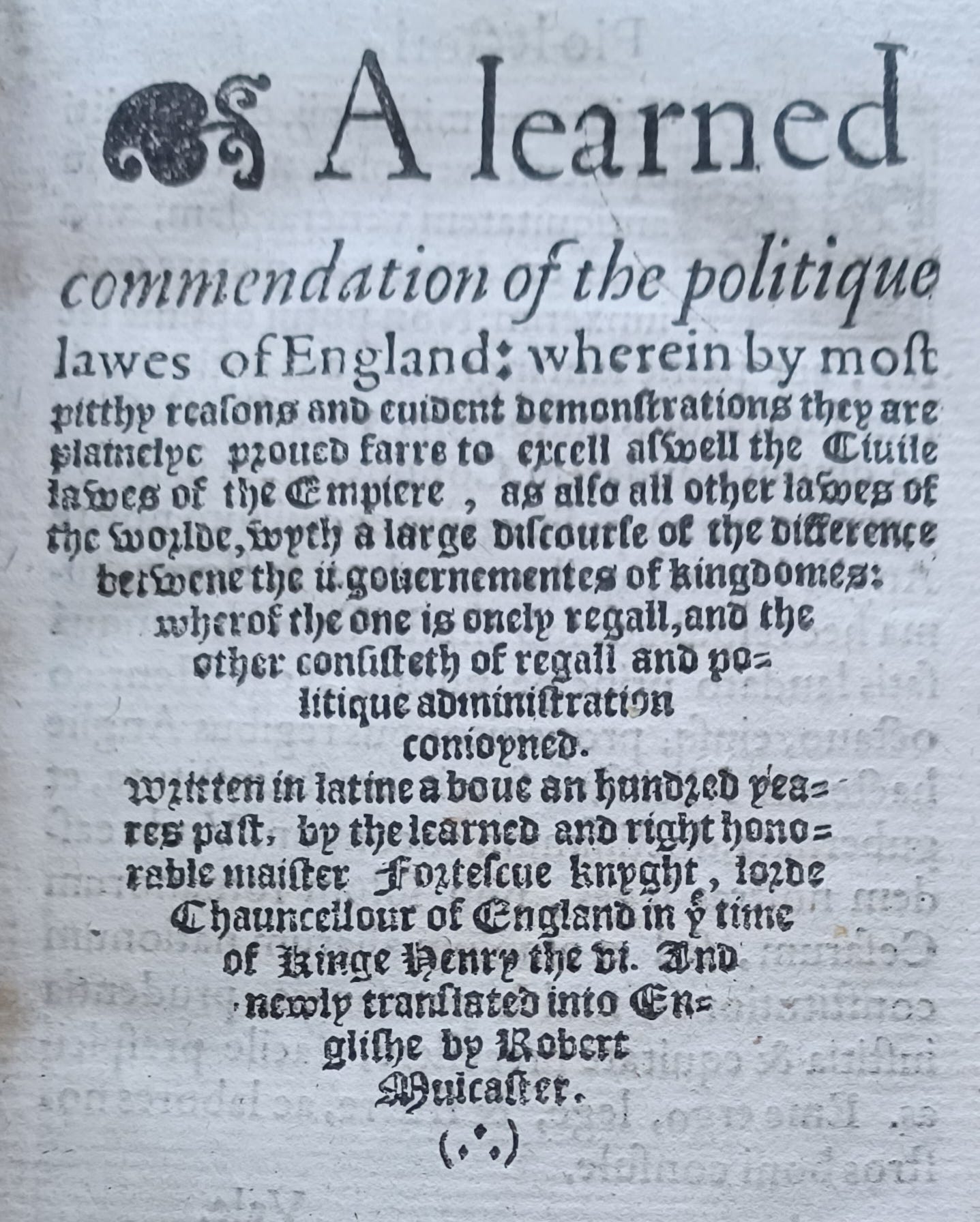 Note on quotations: I have modernised the English in the quotations taken from Sir John Fortescue’s works. I thought, for example, that “Blessyd be God, this lande is rulid vndir a bettir lawe” may be intellectually pure, but not particularly easy to read.
